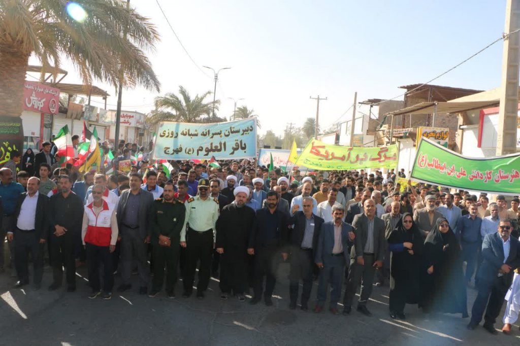 به گزارش پایگاه خبری دارالوحدت فهرج؛ صبح امروز همزمان با سالروز یومالله ۱۳ آبان و روز دانشآموز، مردم انقلابی دیار دارالوحدت فهرج در کنار امام جمعه، فرماندار، فرماندهان سپاه و انتظامی و سایر اقشار مختلف مردم و مسئولان، با حضور گسترده در راهپیمایی ضد استکباری، مسیر میدان امام علی علیه السلام تا مسجد جامع را پیمودند و با شعارهای «مرگ بر آمریکا» و «مرگ بر اسرائیل» انزجار خود را از سیاستهای سلطهطلبانه استکبار جهانی اعلام کردند.