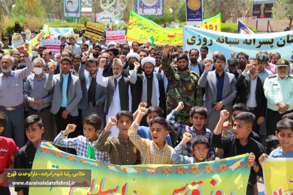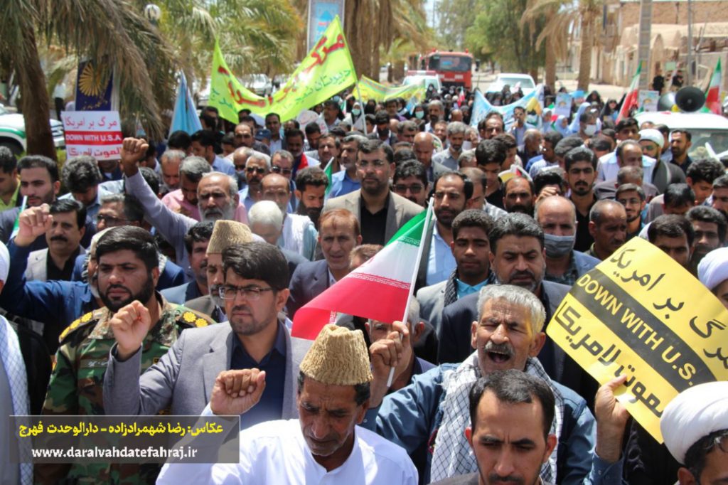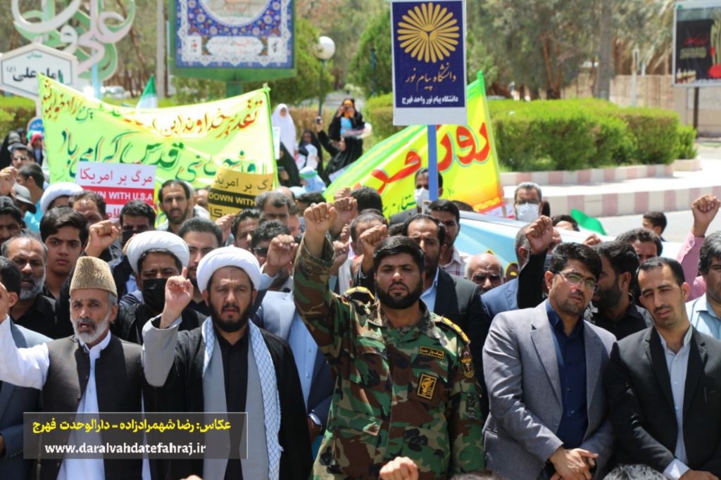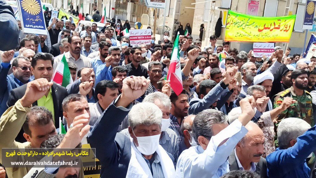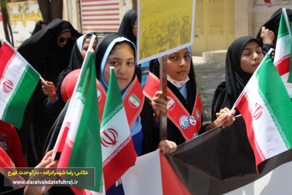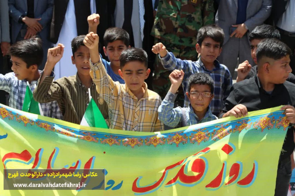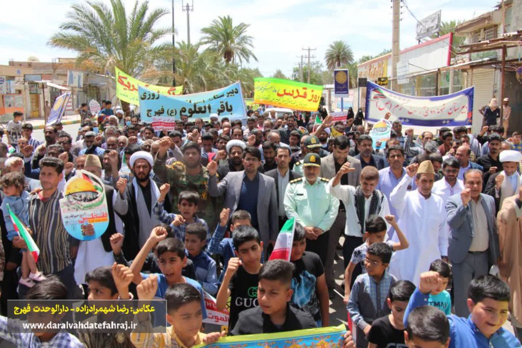 به گزارش پایگاه خبری دارالوحدت فهرج؛ پیش از ظهر امروز و همزمان با سراسر کشور، مردم مومن، خداجو و روزهدار فهرج با حضور باشکوه و گسترده خود در راهپیمایی روز جهانی قدس، دین خود را نسبت به مردم مظلوم فلسطین ادا کرده و جنایات رژیم کودک کش صهیونیستی را بار دیگر محکوم و از آن ابراز انزجار کردند.