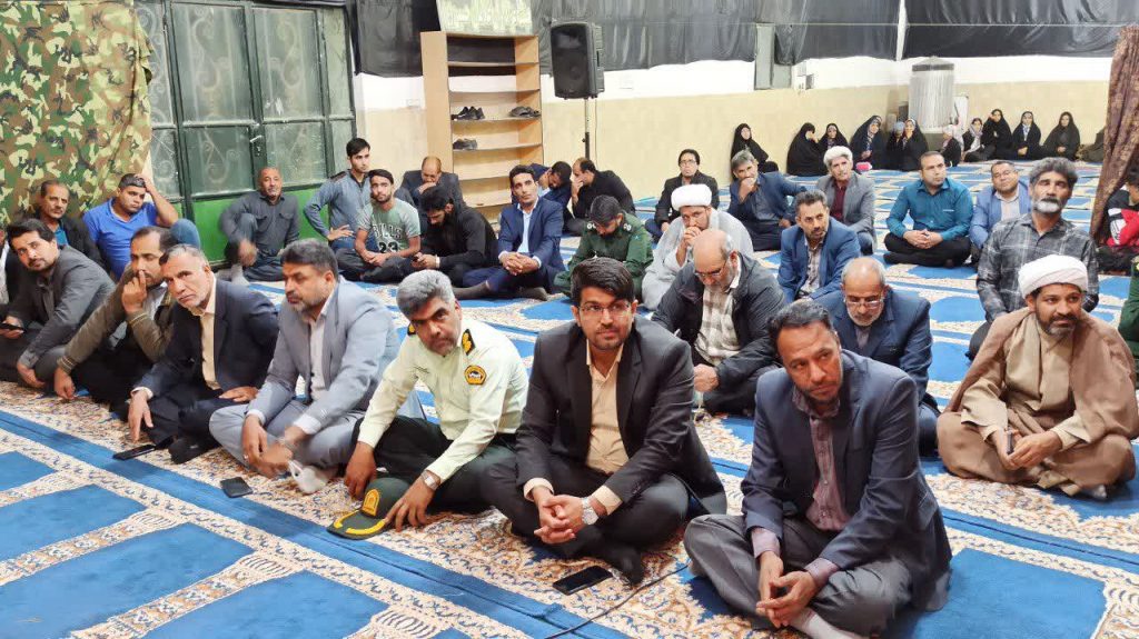این مراسم با حضور فرماندار، مسئول دفتر نمایندگی ولی فقیه در سپاه فهرج، جانشین انتظامی، بخشدار مرکزی، مسئول هیئت نظارت شورای نگهبان، مدیر آموزش و پرورش، مسئول بسیج پیشکسوتان و جمعی از اهالی روستا به همت پایگاه مقاومت بسیج امام علی علیه السلام حوزه شهید باهنر برگزار شد.