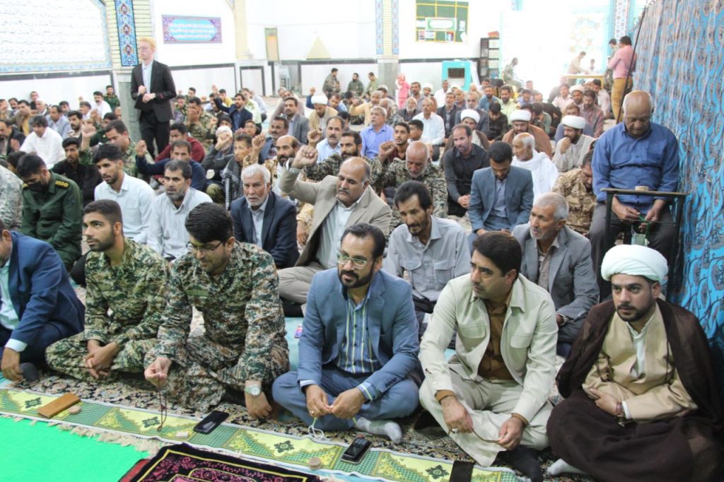 مهندس سعیدنیا فرماندار انقلابی فهرج نیز به مانند اکثریت مردم لباس بسیجی بر تن و در آیین عبادی سیاسی جمعه شرکت کرد.