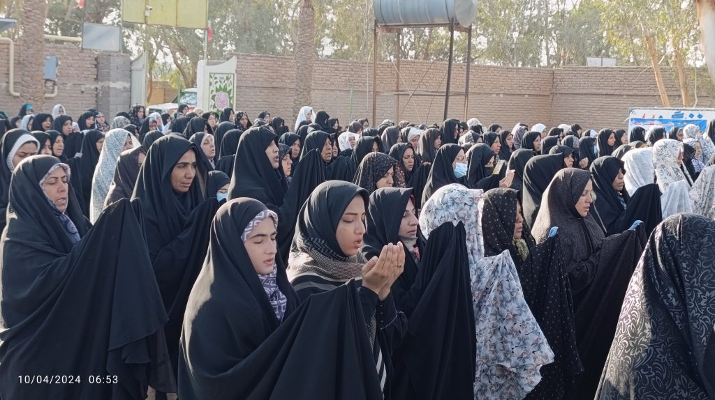به گزارش پایگاه خبری دارالوحدت فهرج؛ صبح امروز؛ نماز باشکوه عید سعید فطر به شکرانه یک ماه بندگی خالصانه با حضور پرشور مردم مؤمن و متدین شهر فهرج به امامت حجت الاسلام آقاملایی امام جمعه محترم در محل دبیرستان دخترانه آسیه برگزار شد.