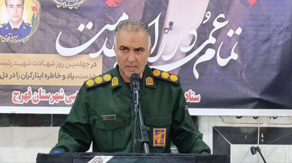 به گزارش پایگاه خبری دارالوحدت فهرج؛ همزمان با اربعین شهادت شهید رئیسی و یاران شهیدش صبح امروز آیین بزرگداشت چهلمین روز عروج آسمانی شهدای خدمت در مسجد جامع شهر فهرج با حضور امام جمعه، فرماندار، فرماندهان سپاه و انتظامی، مسئول دفتر نمایندگی ولی فقیه در سپاه فهرج، مسئول عقیدتی سیاسی انتظامی و جمع کثیری از آحاد مختلف مردم و مسئولان برگزار شد.