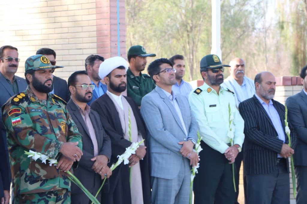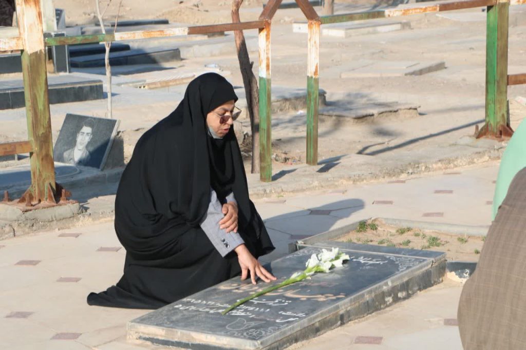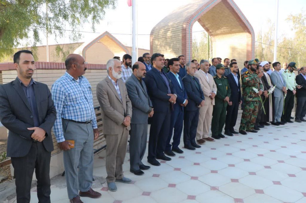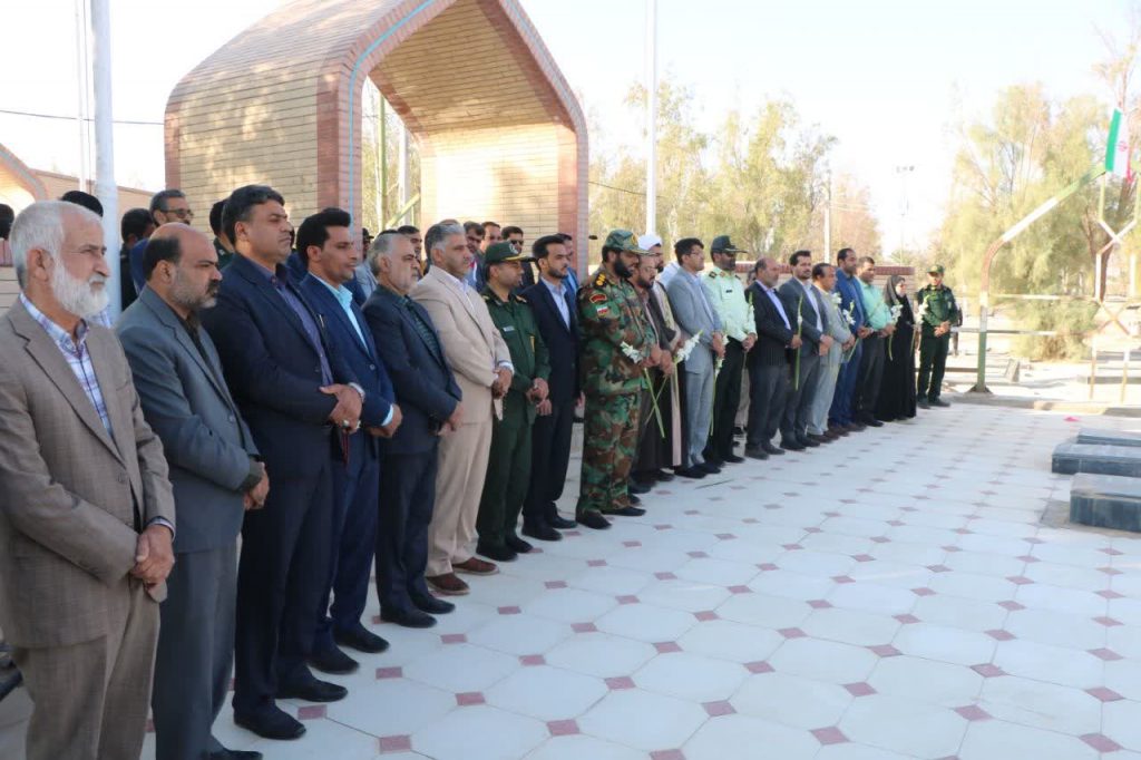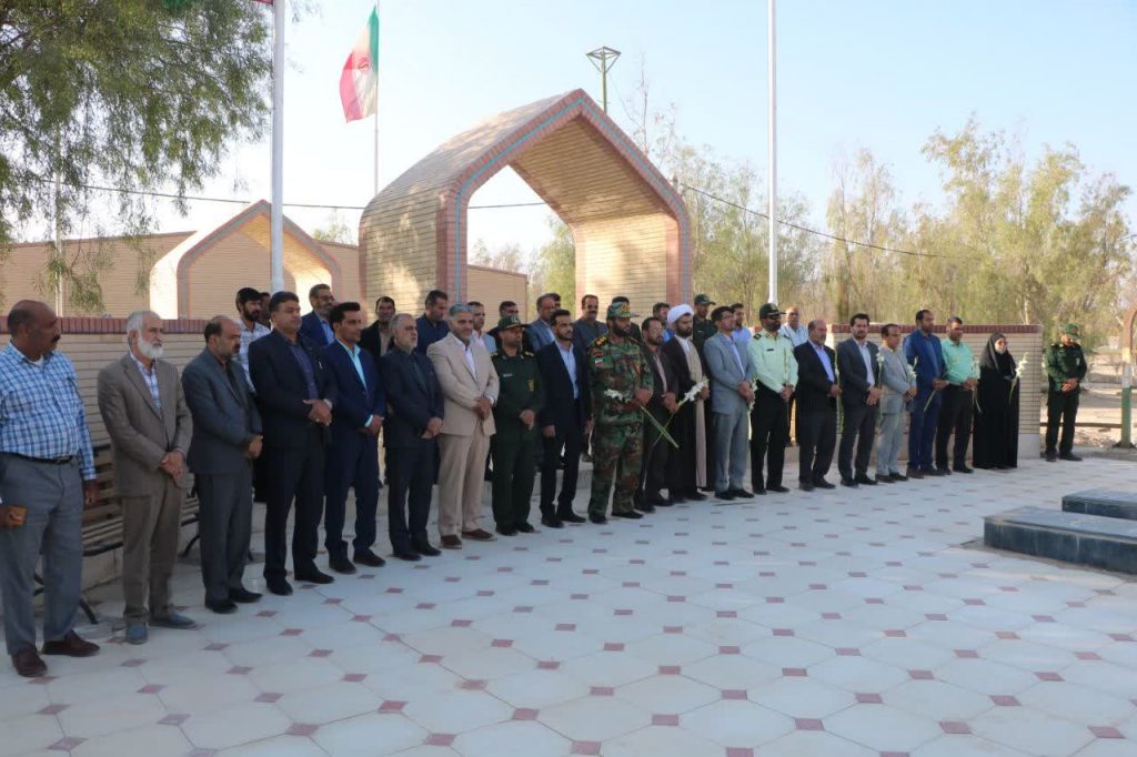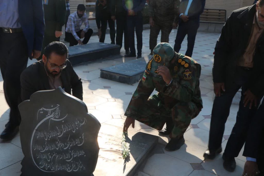 حاضرین در این آیین با نثار فاتحه و اهدای شاخه گل به مقام شامخ شهیدان ادای احترام کردند.