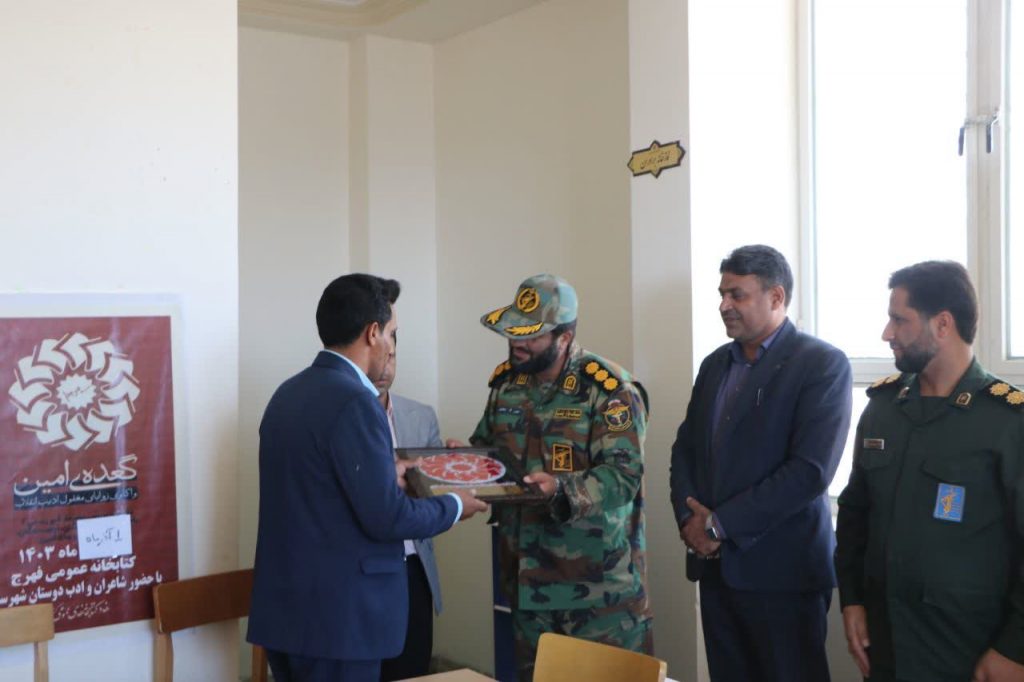 به گزارش پایگاه خبری دارالوحدت فهرج؛ صبح امروز در ادامه برنامه های هفته بسیج، نشست شاعران بسیجی شهرستان فهرج با حضور فرمانده و جانشین سپاه، مدیر آموزش و پرورش، رؤسای ادارات فرهنگ و ارشاد اسلامی، کتابخانه عمومی، ورزش و جوانان، مسئول کانون بسیج هنرمندان و جمعی از شاعران شهرستان در محل کتابخانه عمومی برگزار شد.