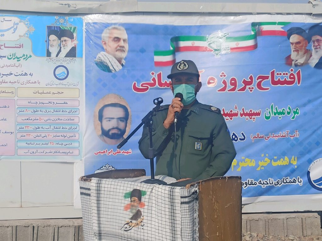 به گزارش پایگاه خبری دارالوحدت فهرج؛ صبح امروز با حضور سردار فرماندهی محترم سپاه ثارالله استان، جانشین آبفا استان، امام جمعه، فرماندار، فرمانده سپاه فهرج و جمعی از مردم و مسئولان محلی طرح آبرسانی مرد میدان «سپهبد شهید حاج قاسم سلیمانی» افتتاح و به بهره برداری رسید.